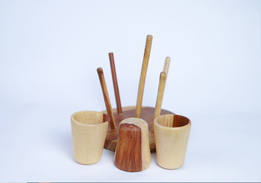 Handmade 5 Wooden cups with holder